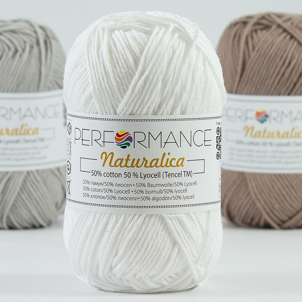 Naturalica на Performance е прежда, в която естествените влакна са в чиста хармония. Коприненото докосване и нежната мекота ще изпълнят високите очаквания на всеки плетач. Naturalica е идеална за летни проекти, тъй като преждата подпомага охлаждането на тялото в горещите дни. Осемте модерни цвята се съчетават отлично и ще бъдат вашето вдъхновение по създаването на перфектните летни проекти. Чилетата са по 50 г. Плете се с игли или кука номер 3 - 4.